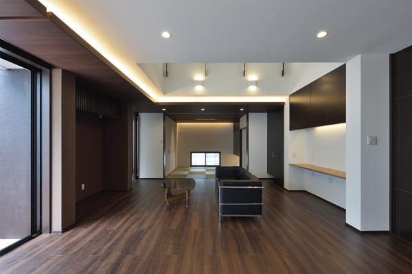 家族が集い、笑い声や楽しい雰囲気が家全体に広がる住まい。リビングに設けた吹き抜けからは、階を通して笑い声が聞こえ、吹き抜け下のスタディカウンターは子どもの頑張りと成長が感じられる最高のインテリアに。デッキテラスではバーベキューを楽しんだり、花火をしたりと、夢が広がります。隣の親世帯とつないだテラスはいつも暮らしの中心に。みんなの「笑顔にフィットする」大切な思い出を紡ぎます。家族で過ごす時間がすごく楽しい、そんな家づくりを目指しました。