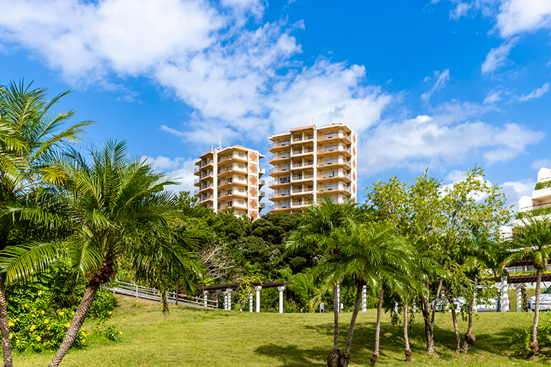 オーキッドホテル棟 延床面積:5,679.25㎡、構造:RC造、地上4階 ツインタワー棟 延床面積:2,899.29㎡、構造:RC造、地上8階