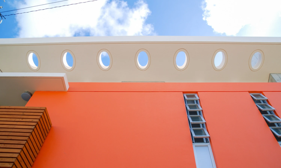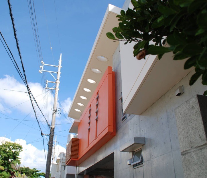 シンプルなつくりとしながらも、庇やバルコニーの⾊や形をスタイリッシュにデザインし、建物に表情をプラスしました。